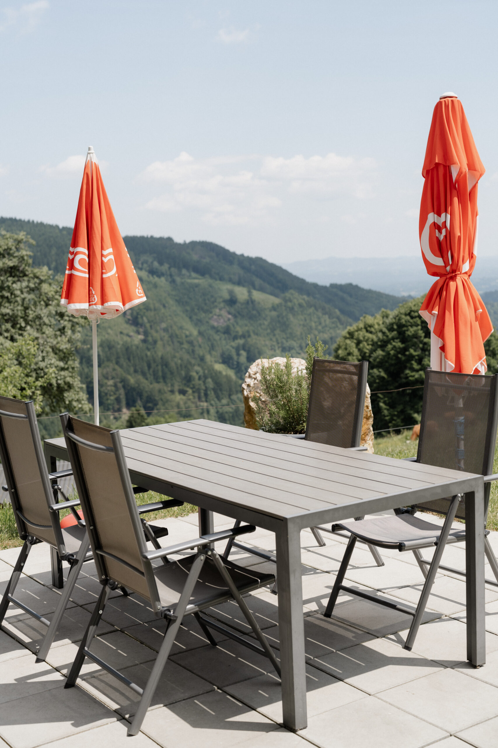 Genießt das Frühstück auf der Sonnenterrasse mit Blick ins Grüne, entspannt abends am Kamin oder lasst einen aktiven Tag bei einem Glas steirischem Wein ausklingen.